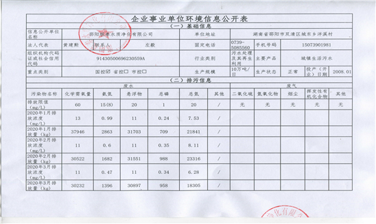 信息公開單位名稱: 邵陽聯(lián)泰水質(zhì)凈化有限公司