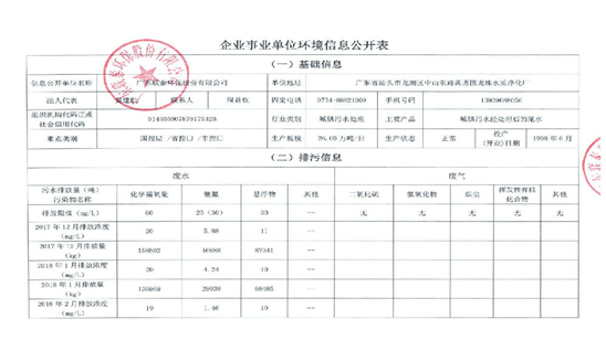 企業事業單位環境信息公開表(龍珠水質凈化廠17年12月-18年5月)