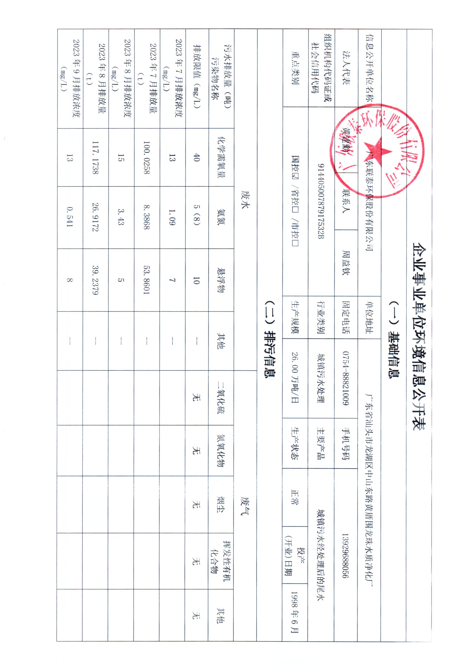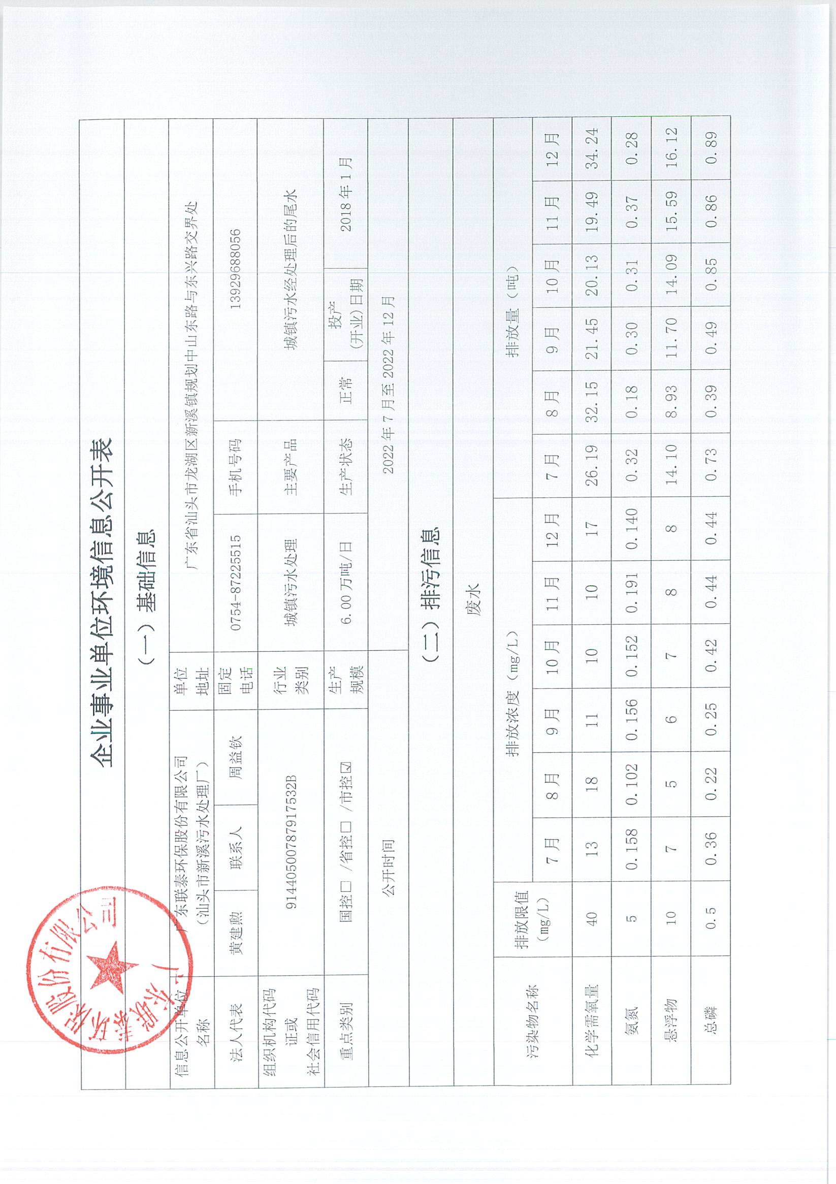 廣東聯泰環保股份有限公司(新溪污水處理廠)